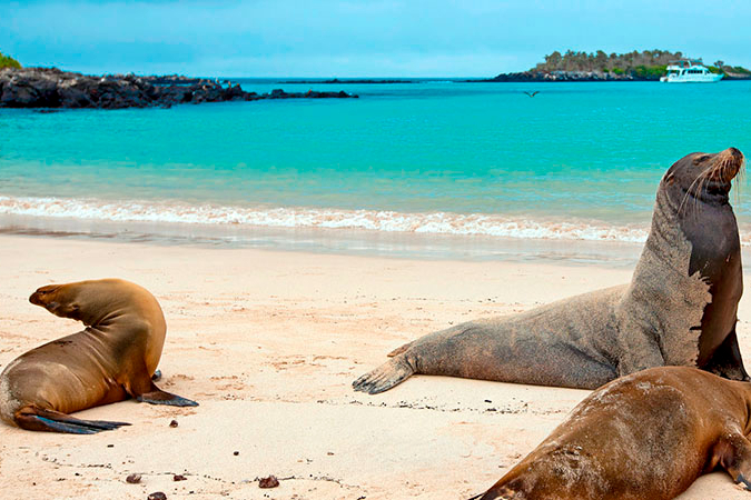 The island was named after English nobleman Lord Hugh Seymour. Formed by uplifted submarine lava, the island is home to a huge colony of about 2,500 land iguanas and large populations of sea lions, blue-footed boobies, common noddies and frigatebirds. Along the coast it is possible to see land and marine iguanas and the biggest colony of Magnificent Frigatebirds.