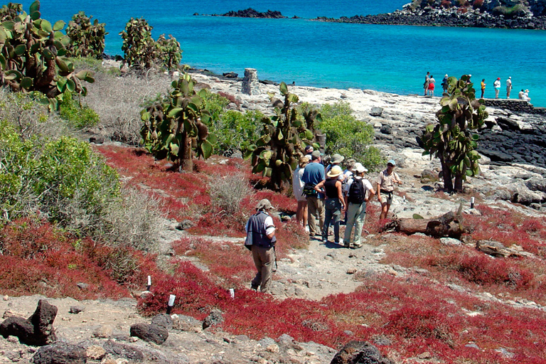 Highlights: Cacti native only to South Plaza, land iguana, finches, sea lions, swallow tailed gulls, red-billed tropicbirds.