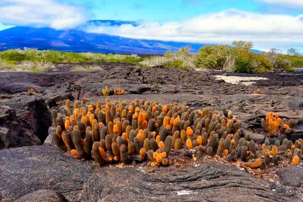 A dry landing onto volcanic rock covered by Sally light-footed crabs will welcome you as you disembark for this walk discovering Cerro Dragon. Enjoy this visit that mixes a brackish water lagoon inhabited by shorebirds, some elusive pink flamingos and a volcanic rock cover dry enough to be the perfect ecosystem for the Galapagos land iguana. Search for this iconic Galapagos inhabitant that populates this area of Santa Cruz. Your guide will be on the lookout too, helping you to recognise them whether they are resting in their burrows or next to the cacti looking for food.