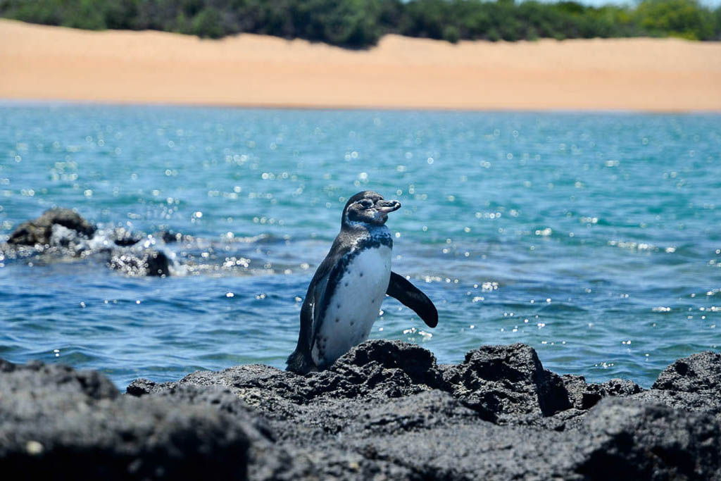Punta Vicente Roca is one of the marine sites Isabela Island has to offer. On the southern side of Ecuador Volcano, the tip of land on the western end of Isabela is named after Vicente Ramon Roca, President of Ecuador from 1845-49, who as Prefect of Guayas had proposed the Ecuadorian annexation of the Galapagos Islands in 1831. The geological formations, the underwater caves and lava tubes offer fascinating views of the coastline. The South Equatorial Countercurrent hits this part of the archipelago from the west and the water offers abundant food sources for different marine life and seabirds. It is normal to see Pacific green turtles, but sharks, rays, whales and dolphins can also be expected, apart from a small colony of fur seals. Blue-footed Boobies, Nazca Boobies, Brown Noddies and other seabirds nest in the cliffs and both the endemic Galapagos Penguins and Flightless Cormorants have established small colonies nearby. Marine iguanas also like this area because of the rich variety of seaweeds growing underwater along the western coast of Isabela. As a marine site, deepwater snorkeling is also possible at Punta Vicente Roca.