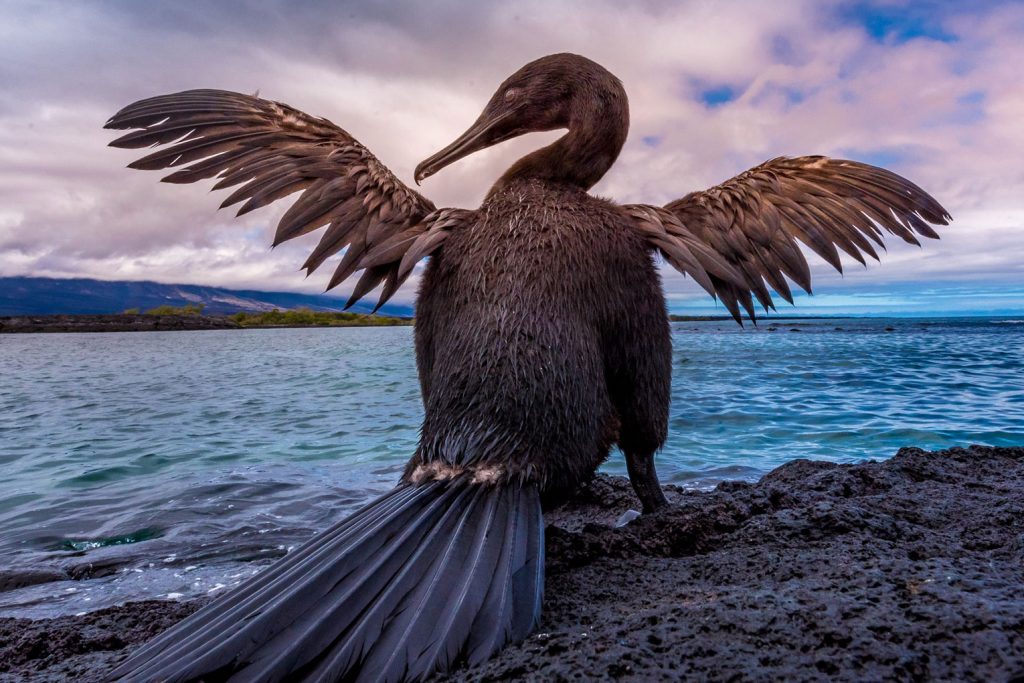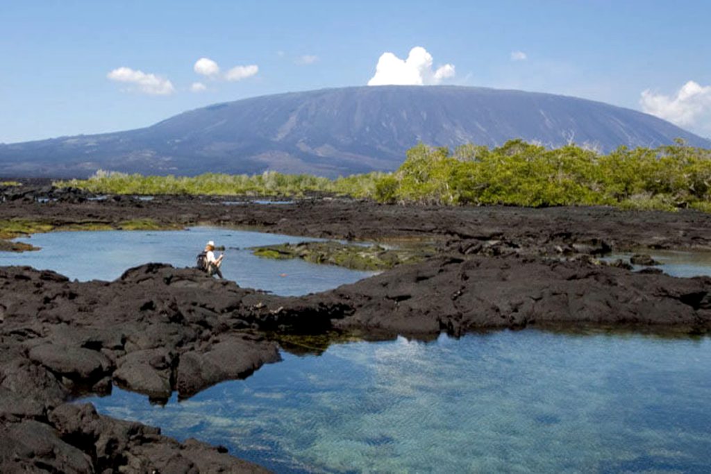 Among the impressive new lava fields of Fernandina Island hides a cove surrounded by mangroves. A rewarding place for bird-watching as the bay is the point where the land meets the sea, joining the two environments, with sea birds, shorebirds and land birds all in the same place. The different species of mangroves: Red, White and Black, have formed a root system that serves as a nursery for many species of fish, including juveniles’ sharks and green sea turtles. Snorkeling is as rewarding with some unique sightings as Marine Iguanas feeding on algae, or flightless cormorants diving for their prey.