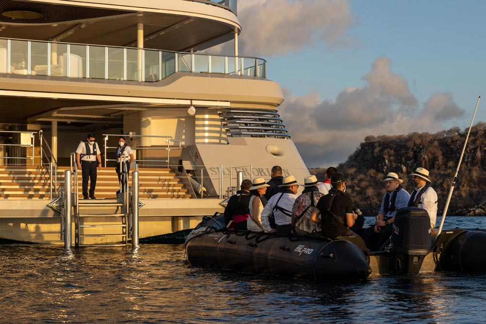 Silver Origin will anchor off Puerto Ayora, Santa Cruz, where the prestigious Charles Darwin Research Station is located. The station is also home to the Fausto Llerena Giant Tortoise and Land Iguana Breeding Center, where guides interpret the center’s captive breeding and reintroduction programs. In addition to these stellar species, throughout the resort are huge nopal trees on which the beautiful Galapagos cactus finch feeds. To round out your stay in Puerto Ayora, enjoy free time in town where local artists have created charming art galleries and street corner coffies.