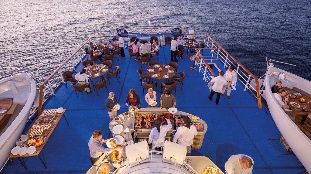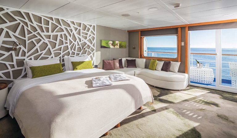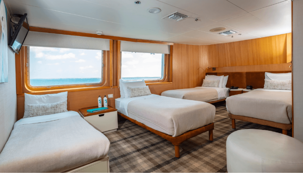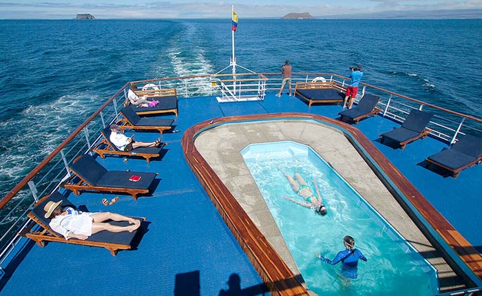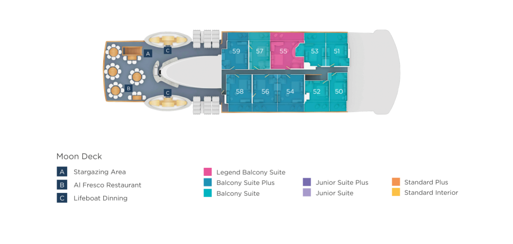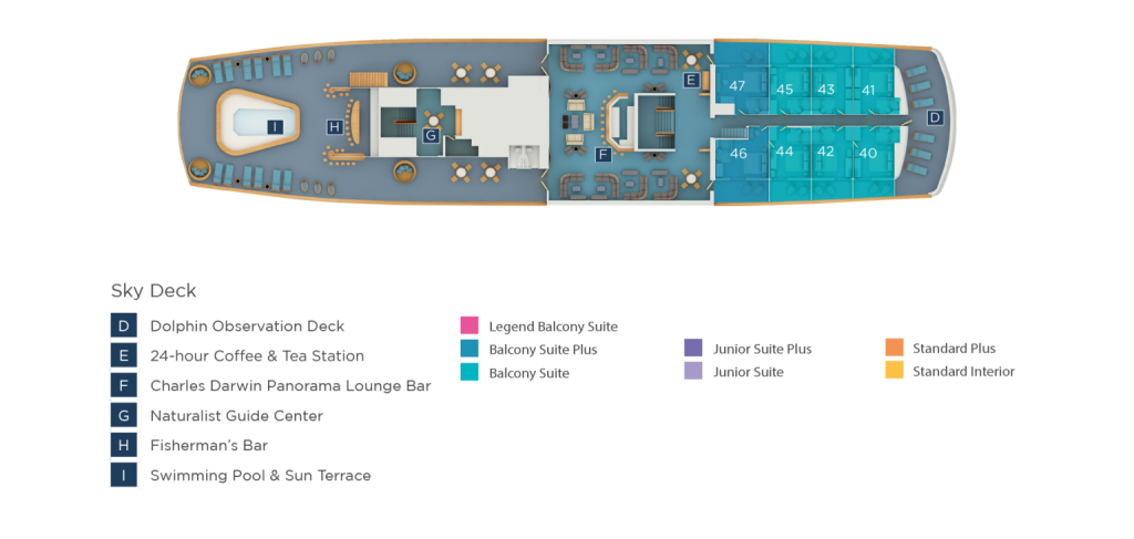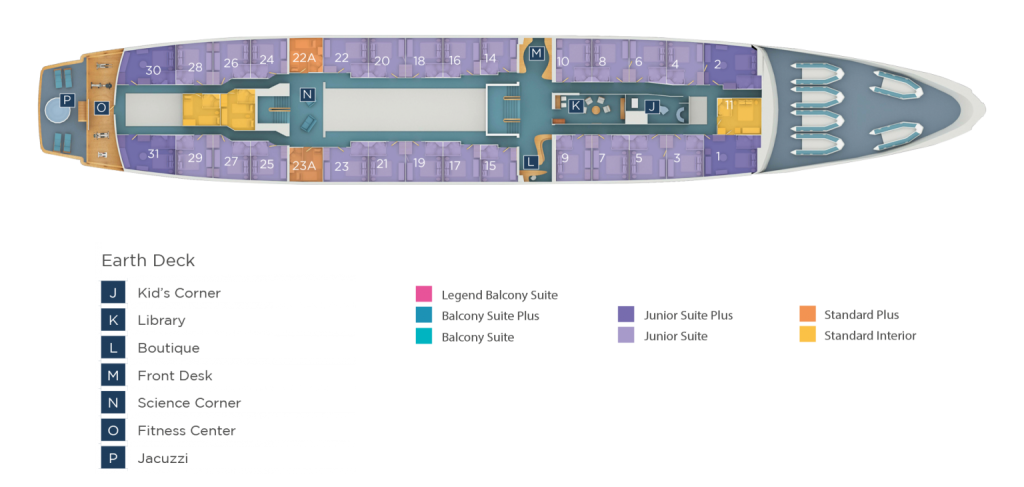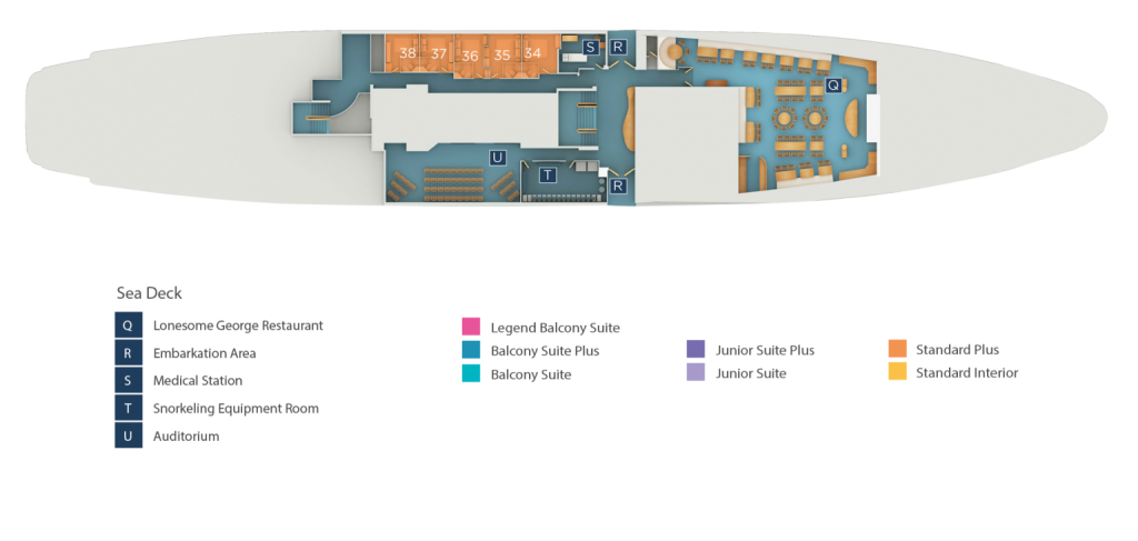 Legend Yacht Specifications -Type: Motor Vessel. -Capacity: 100 passengers. -Accommodation: cabins each with private bathroom and hot water shower: * 9 Balcony Suites bunk beds with two low beds. … -Crew: 55. -Guides: 7 (multilingual naturalists) -Electricity: 110/220 AC – 12/24 DC -Gross tonnage: 2890 t. -Length: 301 ft (92 m) -Wide: 47 ft (15 m) -Decks: 4 -Made in: Germany -Rebuilt: 2002 -Refurbished: 2017 -Speed: 17 knots -Cruise speed: 15 knots -Life Rafts: 22 for 25 pax each -Dinghies: 6 for 20 pax each -Glass bottom boat: 1 -Kayaks: 8 double, 1 single Itinerary